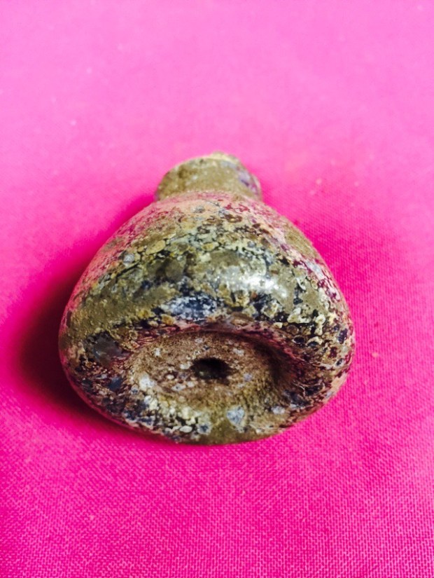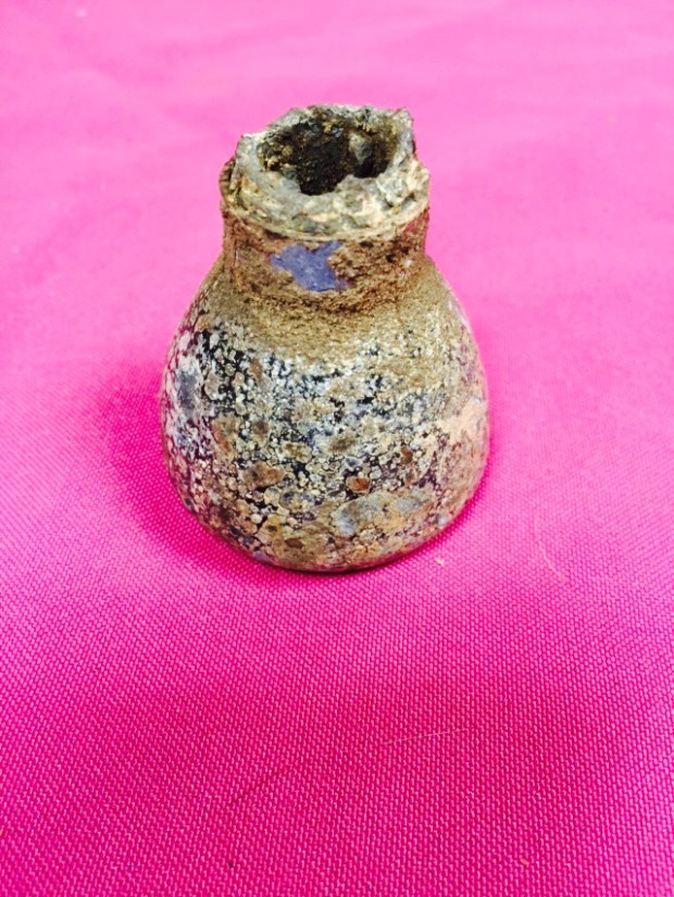 Against a shoreline in Pasadena I found the above two items and some other finds. The first two pictures are of a brass (what I think) is an old inkwell. From everything I have found in research this site was a very old military housing area. I’m interested in any comments you may have on the ink-well or your opinion as to what you may think it could be. I’m 100% sure to be honest.